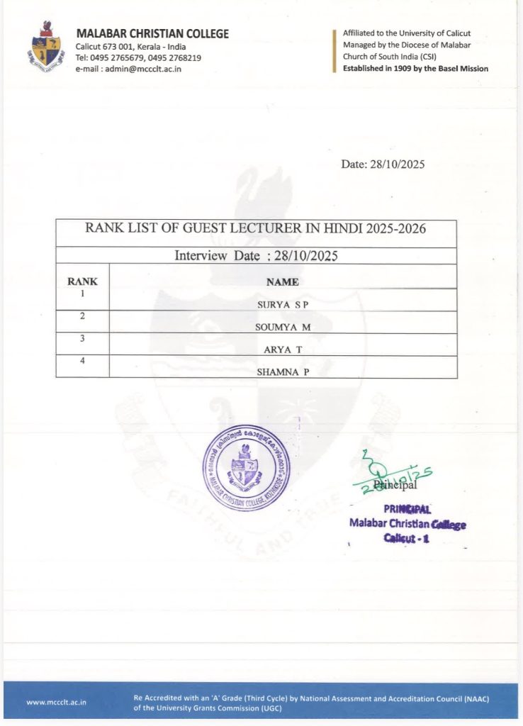 വിവിധ ഡിഗ്രി പ്രോഗ്രാമുകളിലേക്ക് മാനേജ്മെൻ്റ് ക്വാട്ട അഡ്മിഷനുള്ള ഓൺലൈൻ അപേക്ഷ ആരംഭിച്ചിരിക്കുന്നു. കൂടുതൽ വിവരങ്ങൾക്ക് ഈ വെബ്സൈറ്റിലെ നോട്ടീസ് ബോർഡ് കാണുക.