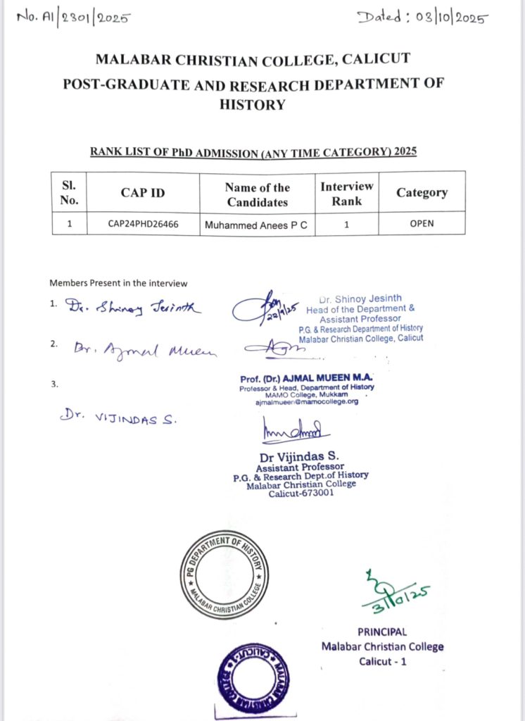 PhD admission rank list – History