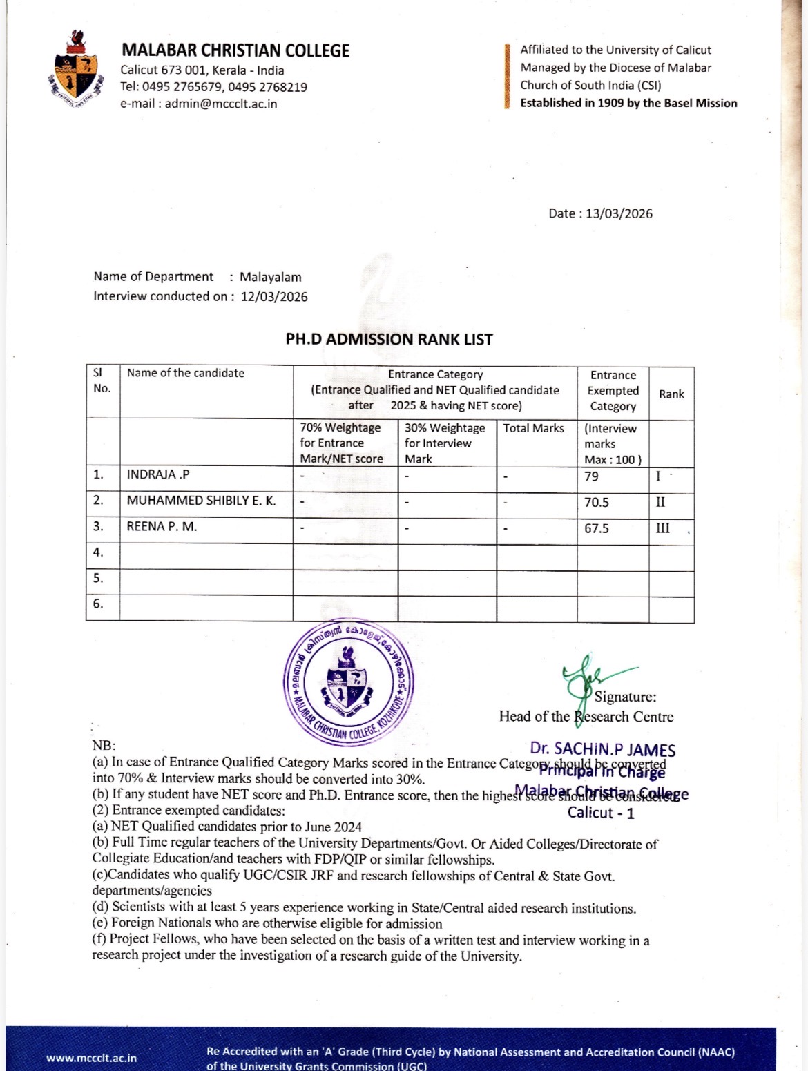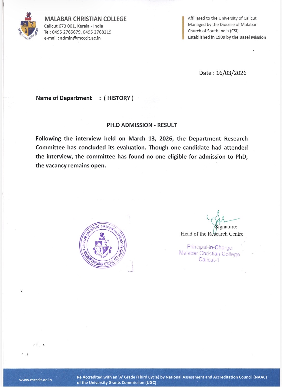 വിവിധ ഡിഗ്രി പ്രോഗ്രാമുകളിലേക്ക് മാനേജ്മെൻ്റ് ക്വാട്ട അഡ്മിഷനുള്ള ഓൺലൈൻ അപേക്ഷ ആരംഭിച്ചിരിക്കുന്നു. കൂടുതൽ വിവരങ്ങൾക്ക് ഈ വെബ്സൈറ്റിലെ നോട്ടീസ് ബോർഡ് കാണുക.