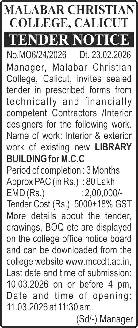 വിവിധ ഡിഗ്രി പ്രോഗ്രാമുകളിലേക്ക് മാനേജ്മെൻ്റ് ക്വാട്ട അഡ്മിഷനുള്ള ഓൺലൈൻ അപേക്ഷ ആരംഭിച്ചിരിക്കുന്നു. കൂടുതൽ വിവരങ്ങൾക്ക് ഈ വെബ്സൈറ്റിലെ നോട്ടീസ് ബോർഡ് കാണുക.